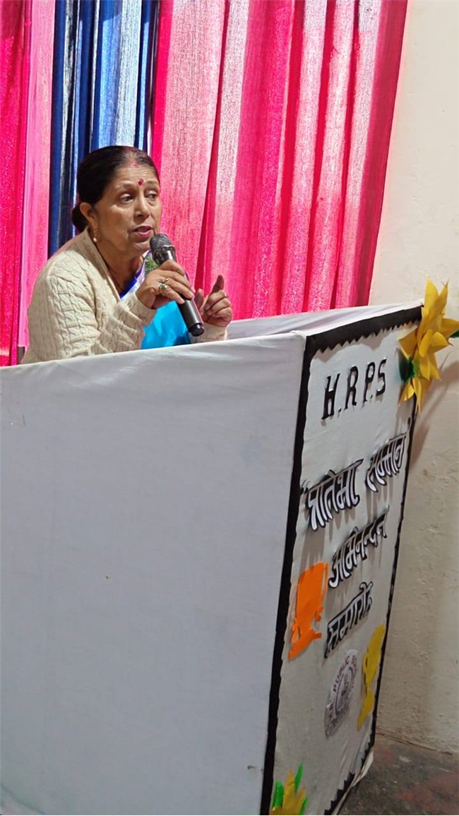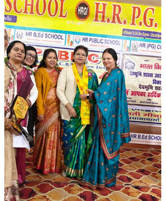 The event was graced by the esteemed presence of Smt. Kamla Joshi (Member of the Women's Commission and President of the Sanskar Seva Samiti, Haridwar), Smt. Rashmi Chauhan (NCTE Member, BJP Vice President, and Principal/Director of Angel's Academy, Bahadrabad), and Smt. Kiran Aggarwal (Treasurer of the Bharat Vikas Parishad). Their participation added a special glory and charm to the entire function.