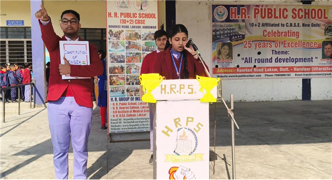 Constitution Day was celebrated with great enthusiasm today at H.R. Public School. On this occasion, a special program was organized by the school to help students understand the importance of the Constitution and their duties as citizens.