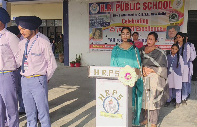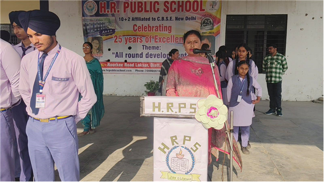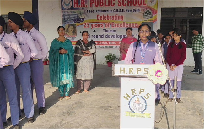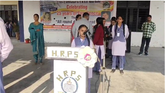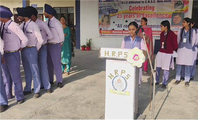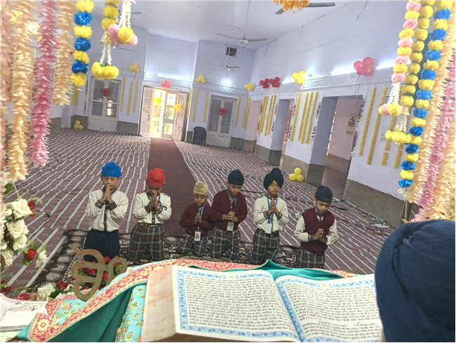 On the occasion of Guru Nanak Jayanti, the students of H.R. Public School presented Shabad, couplets, poems and the biography of Guru Nanak Dev Ji at the prayer place.